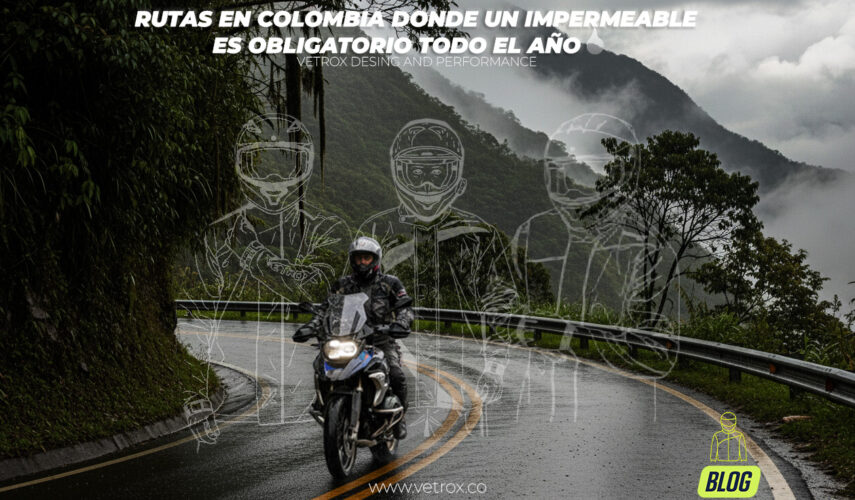 Esta carretera, conocida como el «Trampolín de la Muerte», es un testamento a la belleza y el peligro de la geografía colombiana. La neblina es una compañera constante, y las lluvias inesperadas pueden convertir las curvas cerradas en un reto. Un impermeable que no ofrezca una protección robusta contra la humedad no solo te incomoda, sino que también pone en riesgo tu seguridad. Los impermeables VETROX están equipados con elementos reflectivos de alta luminosidad que te hacen visible en las condiciones de niebla más densas. Además, su diseño ergonómico y liviano te permite tener total libertad de movimiento, algo crucial en un camino con tantas curvas y desafíos técnicos.